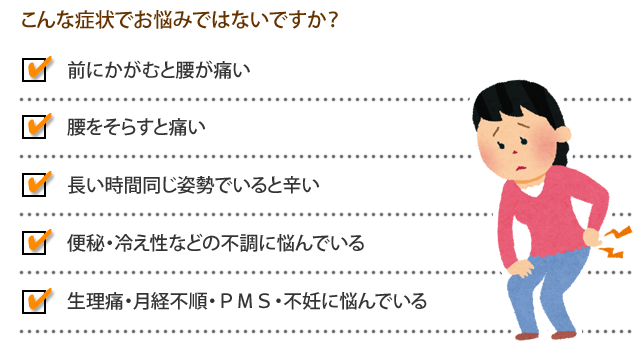 腰痛・股関節痛・冷え性・生理痛を改善!